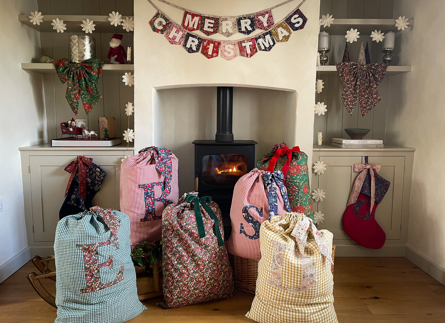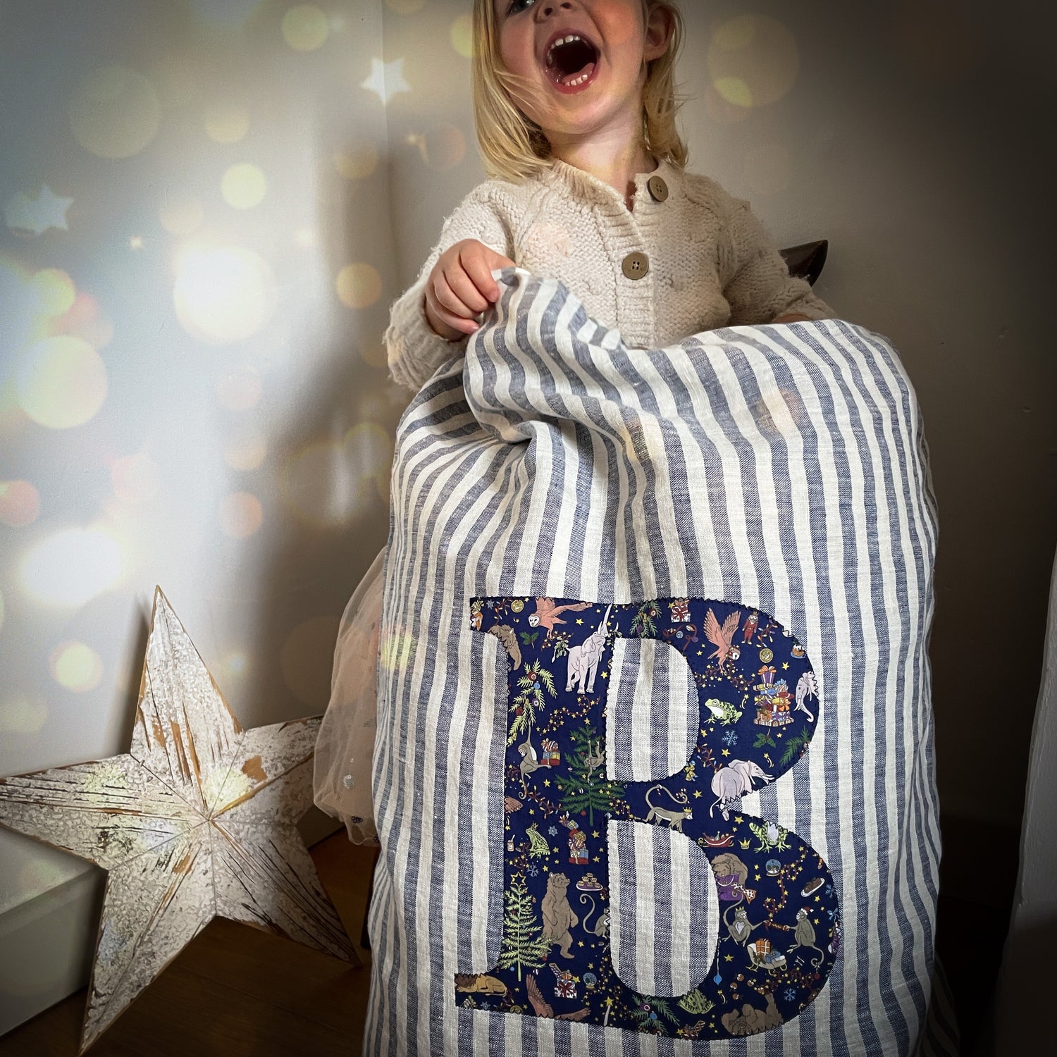 Our range of Linen Personalised sacks or Liberty Print Sacks are heirloom...
