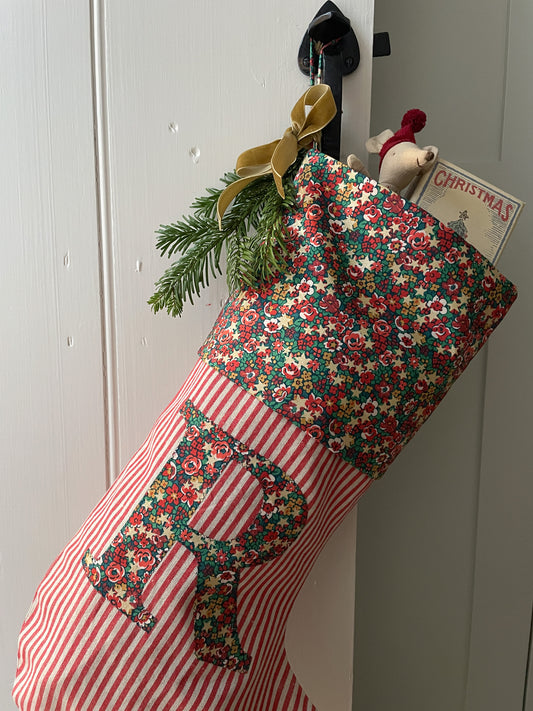 SAMPLE Navy Striped Linen Personalised Christmas Stocking