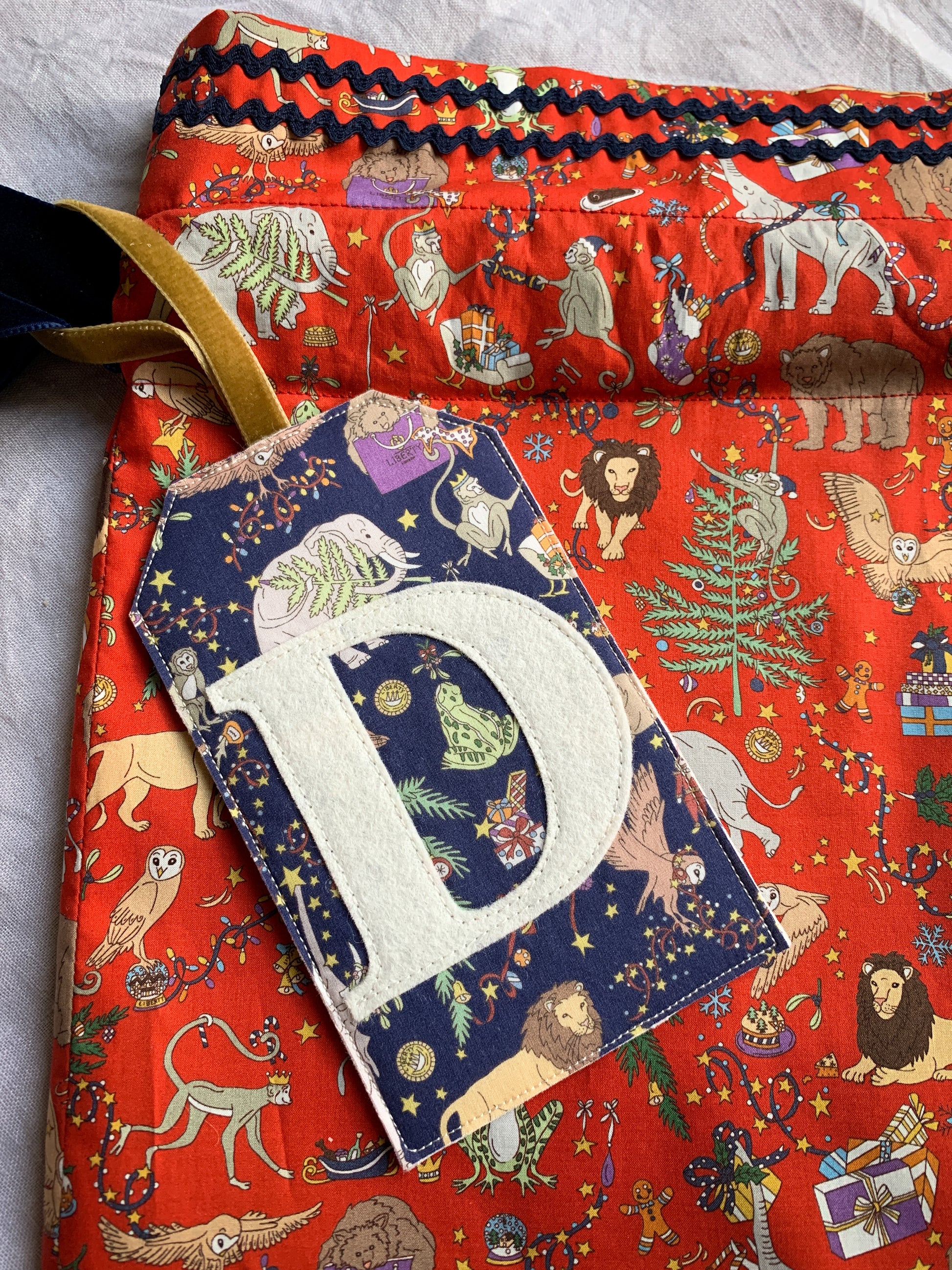Large Gift Sack Liberty Monogrammed Gift Tag