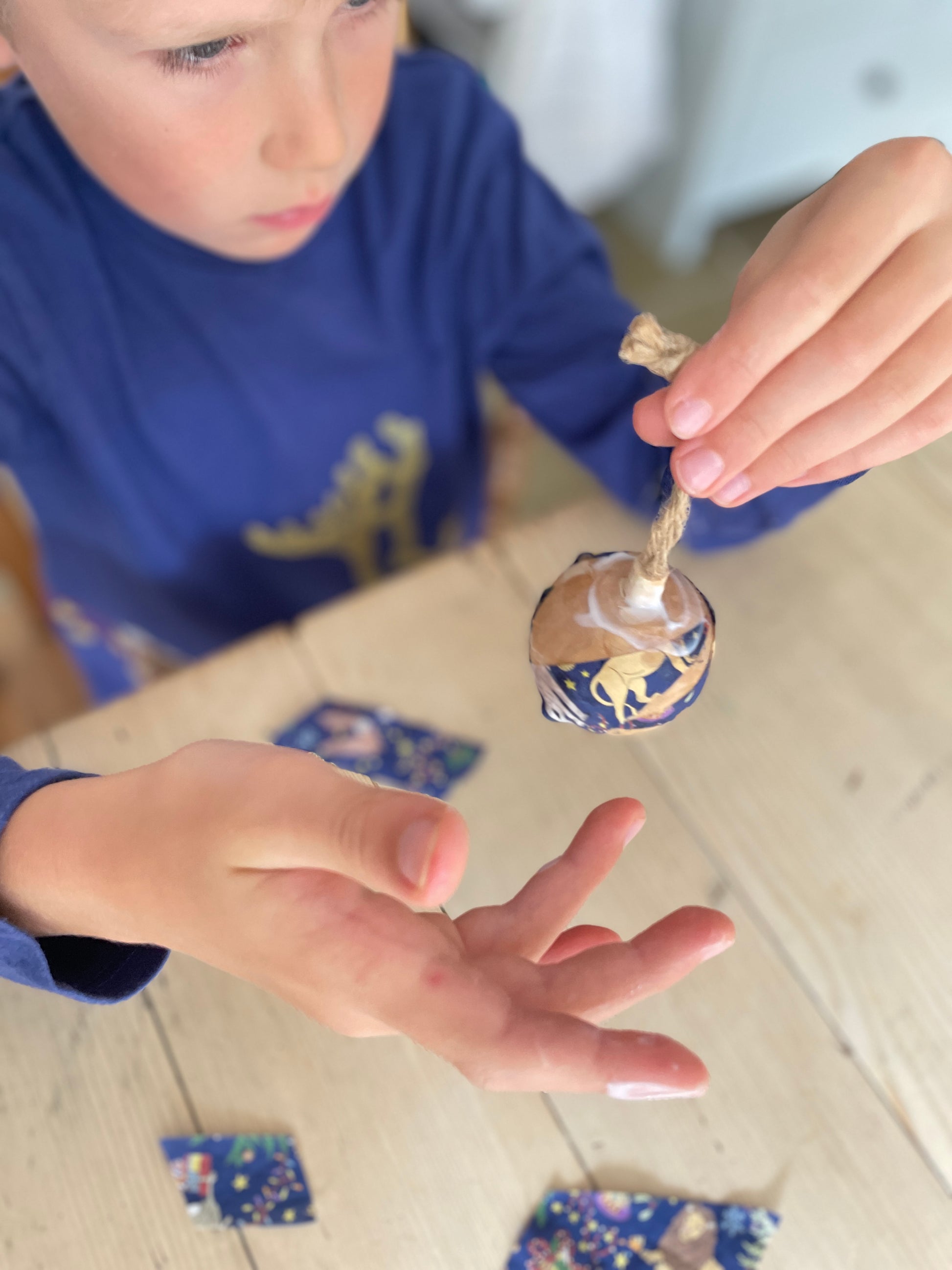 You can make Christmas decoupage items like baubles for the tree and abstract trees, all you need is a paintbrush or your fingers, decoupage glue and an item to adorn the fabric with.