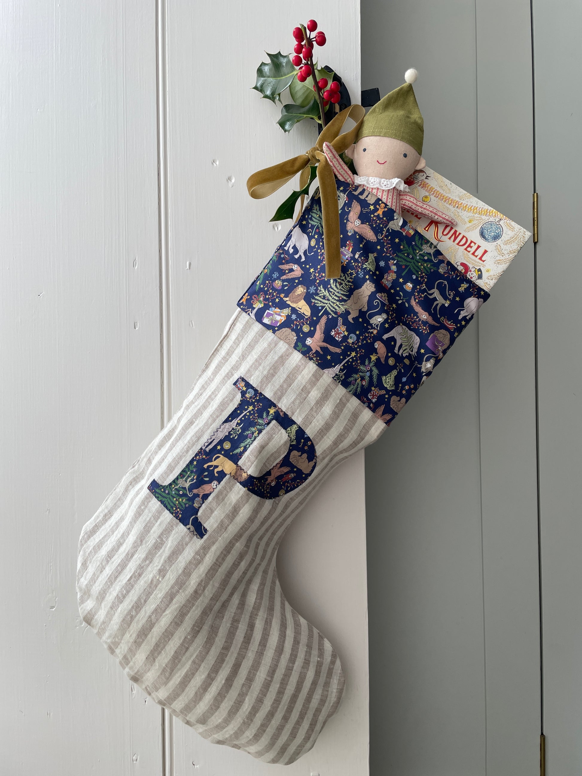 Made with the print of your choice, the stocking has a large Liberty Print Initial and beautiful printed cuff with hanging loop, lined with quality weighty ivory linen. These are luxurious keepsakes you'll cherish forever.