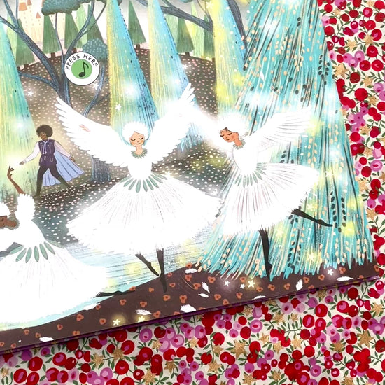 Push the button on each scene to hear an orchestra playing from Tchaikovsky’s score. At the back of the book, find a short biography of the composer, Pyotr Ilyich Tchaikovsky, with details about his composition of Swan Lake. Next to this, you can replay the musical excerpts and, for each of them, read a discussion of the instruments, rhythms and musical techniques that make them so powerful. A glossary defines musical terms.